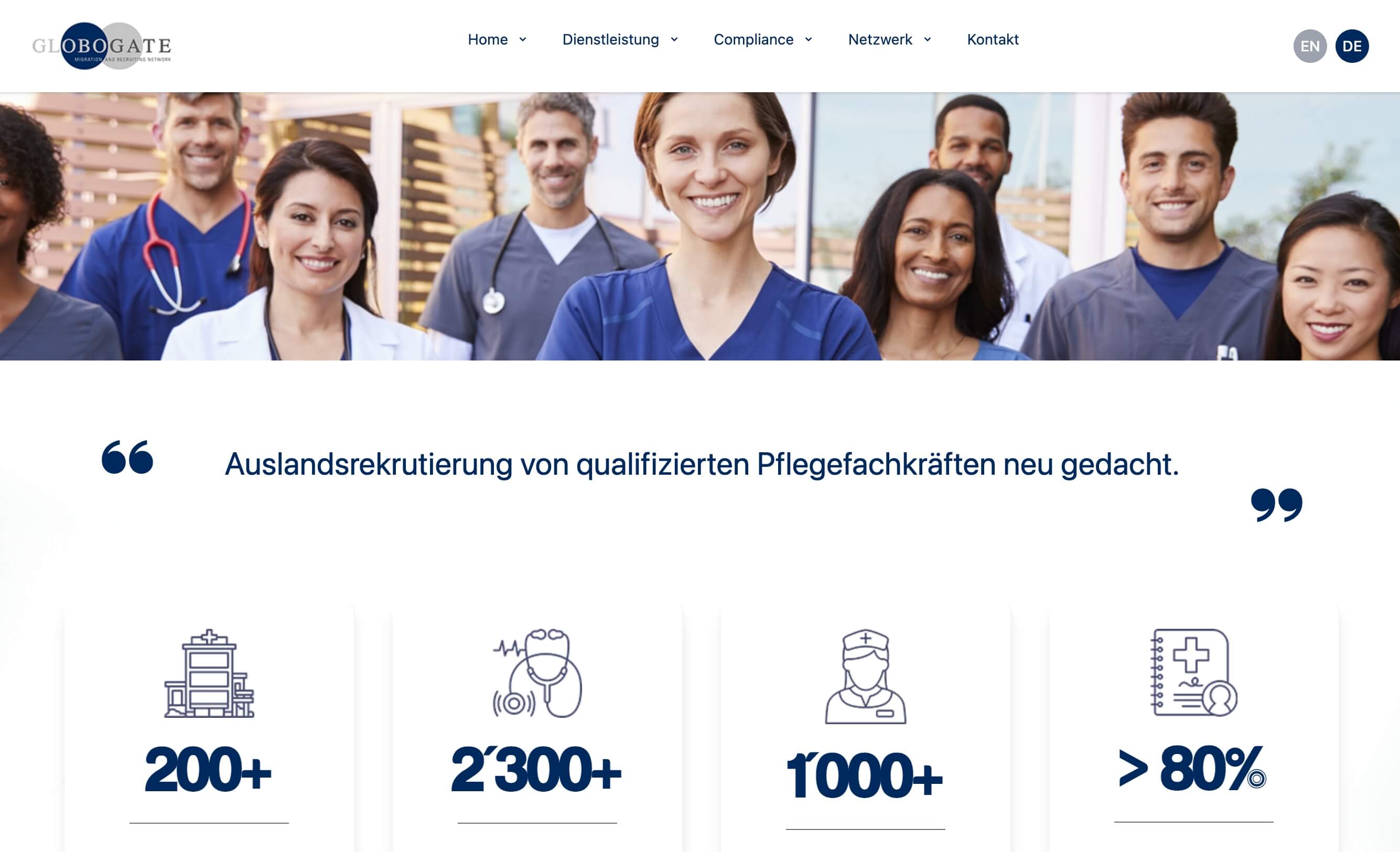 Client quote: "They are always available and are very committed." High-quality nurses placed with German employers at scale.